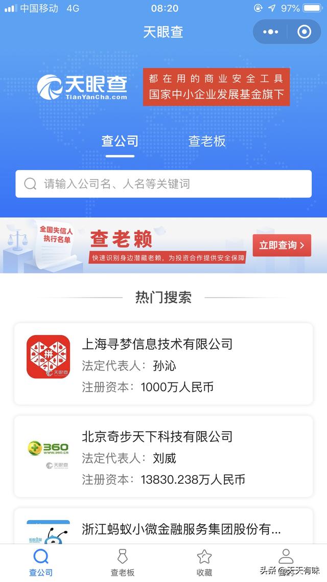 免费的查询工具首推,国家工商企业查询系统。通过搜索关键词,可以查到你要调查的企业及老板。但它没有付费工具那么全面,你需要手动追踪关于法人改变的其他参股或投资的情况。另外,一个免费工具是阿里巴巴的诚信通,对于普通查询需求和企业调研,都足够使用了。