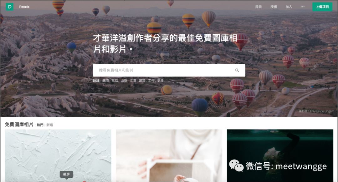 拥有1.5百万张免费图片和视频素材,部分带水印的Shutterstock收费;支持中文搜索。
