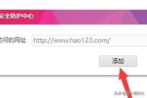 进入“360安全防护中心-信任与阻止”界面后,点击“阻止的网址”项进入,接着点击“添加阻止URL”按钮,并从弹出的“360安全防护中心”窗口中,输入要阻止的网站,点击“添加”按钮。