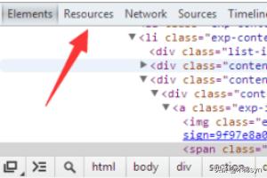 2、此时可以在下方看到弹出的源码框,点击上方的【resources】选项