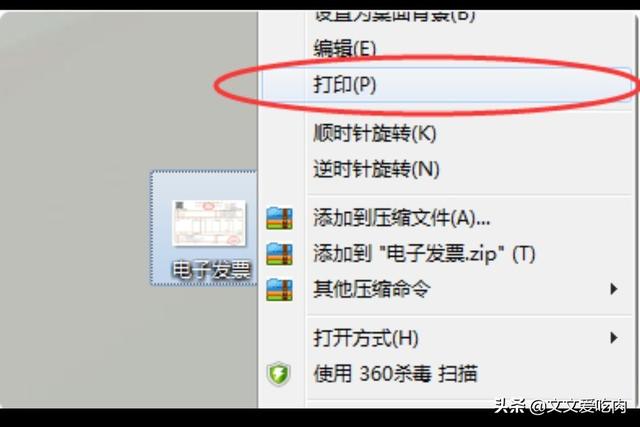 9、将保存在电脑中的发票点击右键选择“打印”即可。