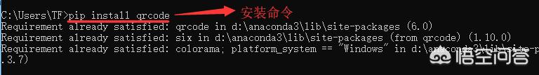 首先,需要下载qrcode这个库,专门用于生成二维码,下载的话,直接在cmd窗口输入命令“pip install qrcode”,如下: