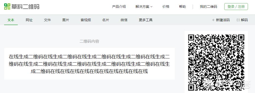 这也是一个在线制作二维码的网站,基本功能和草料二维码差不多,输入文字后,也可以指直接转换为二维码,官网支持的文本字数是150字以内,也支持背景色设置、logo、美化等功能,使用起来也非常不错,制作的效果如下,左边为文本信息,右边为生成的二维码,可以直接下载到本地: