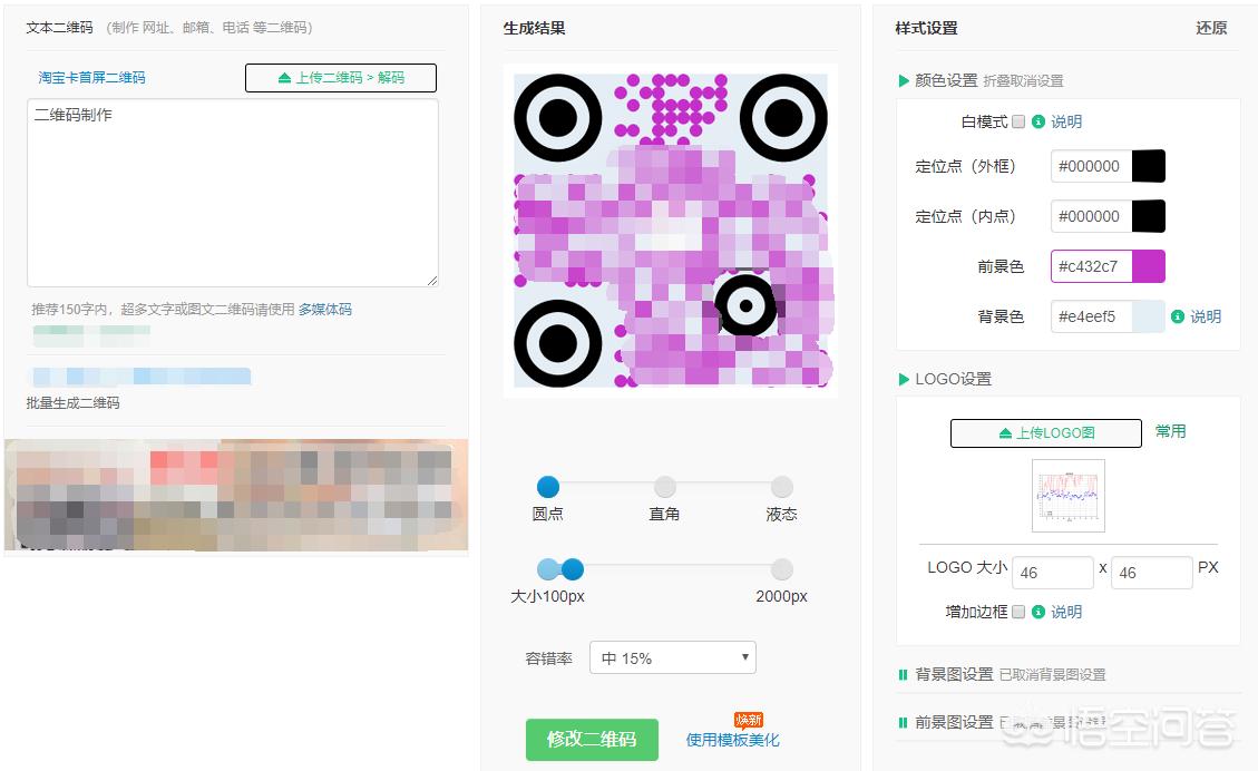 这个网站工具可以嵌入logo、嵌入文字、修改颜色和样式,功能比较多。