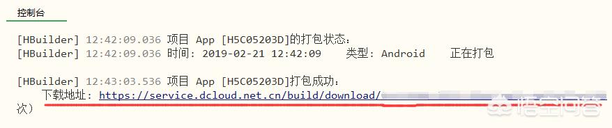 最后点击“打包”按钮,就会开始云端打包,打包完成后,会自动生成下载链接,这里我们可以直接点击将打包好的apk下载到本地,如下: