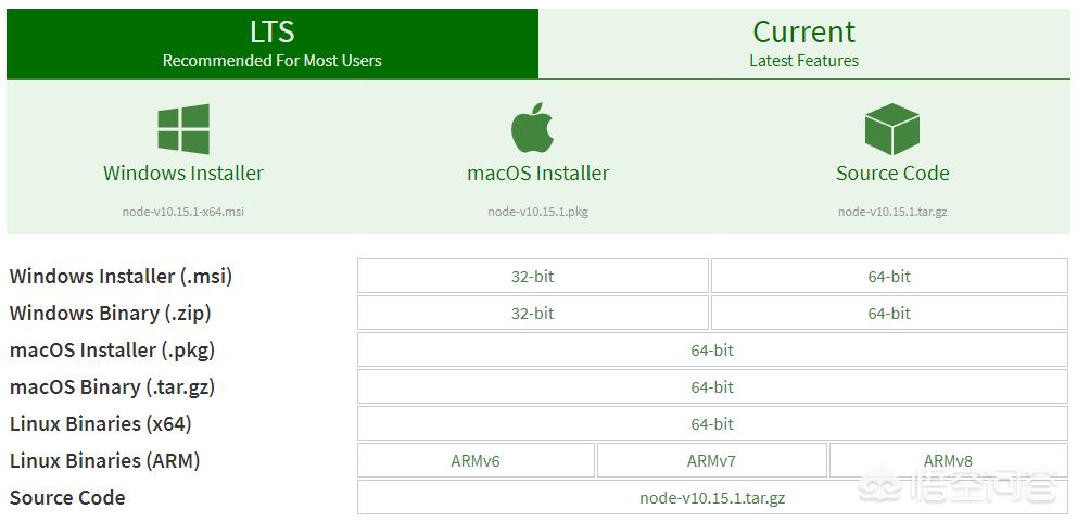 1.首先,需要下载安装node环境,这个直接到官网上下载安装就行,如下,选择适合自己平台的版本即可: