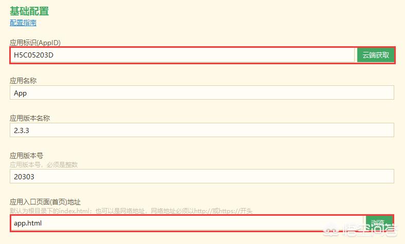 首先,双击项目的mainfest.json配置文件,在基础配置页面,点击获取唯一的应用标识,同时设置应用入口页面,也就是上面测试的app.html: