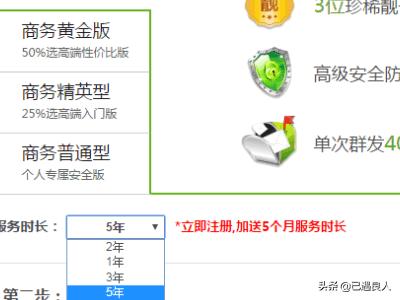 套餐不同,可使用的功能权限是不一样的,按照自己的需求进行选择就可以了,另外,需要选择使用年限。如图所示