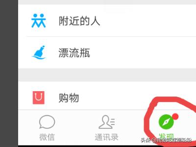 然后我们点发现,然后点击朋友圈,如图所示;