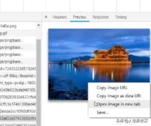 4、点击图片文件,右边会出现预览图片,找到自己需要的图片,右键选择open image in new tab。