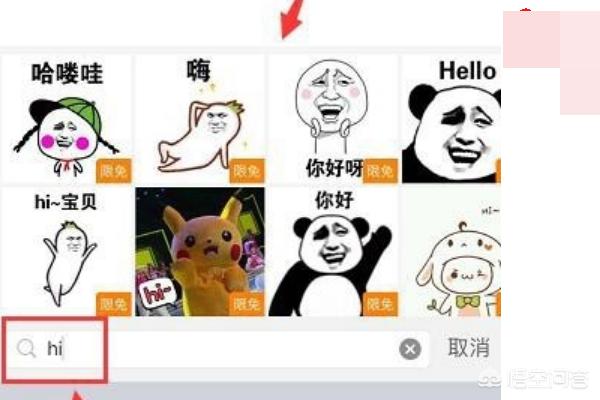 4、例如输入关键词hi,就可以搜索出很多关于hi的动态图
