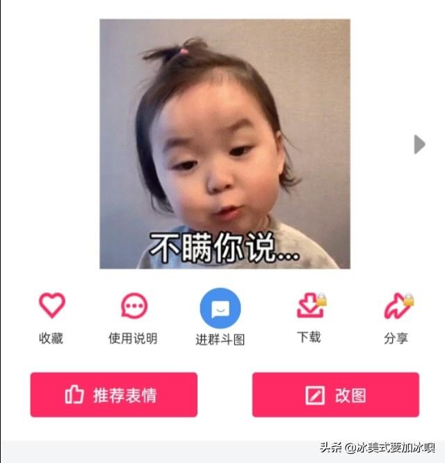 3.选好动态图片之后,点击“改图”,进入之后可以点击“文字”,输入自己想输入的话输入文字同时可以更改文字颜色,还可以这里添加文字背景颜色,字体大小。添加文字之后点击“下载表情”,接着出现的图片长会出现对话框点击“保存图片”就好了。