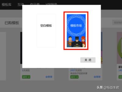 3、点击【创建场景】选项之后,即可进入场景创建界面了,可以创建一个空白场景,也可以使用其它作者已经创建好的场景模板,如下图所示。