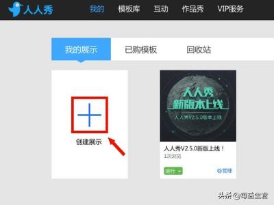 2、使用账号登录到人人秀网站之后,在我的场景里可以找到【创建场景】选项,如下图红框位置所示。